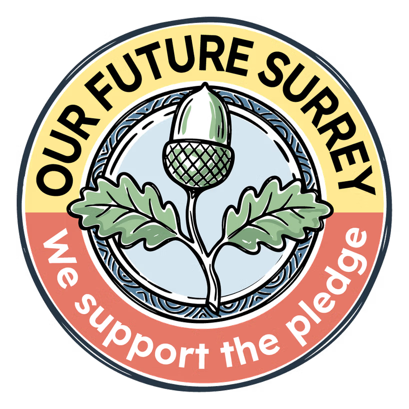 That's why Green Elmbridge is supporting the Our Future Surrey Pledge – a campaign asking all candidates to commit to five priorities that address what residents say they need most: